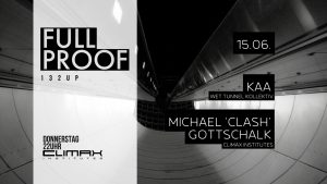 Donnerstag ist FULL PROOF Tag! Denn die FULL PROOF Nächte stellen den pre- Weekend Hotspot für elektronische Musik in Stuttgart dar. Seit Jahren eine feste Institution im heimischen Nachtleben, verwöhnt die Eventreihe das Publikum zuverlässig Woche für Woche mit einem feinen Line-Up und wilder Feierei inklusive Freitags-Hangover Garantie! Heute lädt Mr. Climax himself Michael Clash Gottschalk gemeinsam mit KaA zum Donnerstags-Rave in den Keller des Climax Institutes. Because a rave on Thursday keeps the doctor away!